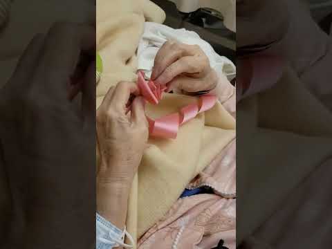 In a better mood and seeming more lucid, I decided to unpack the surprise I brought for my mother tonight: Ribbon, wire, and floral tape. My mother doesn't remember a conversation from minutes ago. She loses the sequence of events from the past. Yet, she spent decades as a florist (fresh flowers) and floral designer (ribbon flowers). She ran a shop, taught ikebana and floral design classes, even had a stall at Ottawa's Byward Market for several years. She was truly gifted and talented, and created thoughtful and beautiful arrangements over the years. I handed her a long ribbon, and this is what she proceeded to do. She even managed to complain that I brought the wrong thickness of ribbon to her: